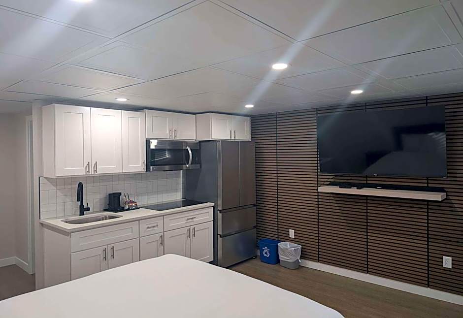 This suite offers a separate living area with comfortable seating, a sofa bed, flat-screen TV, a microwave and a refrigerator. The separate bedroom features a queen-sized bed and additional TV.